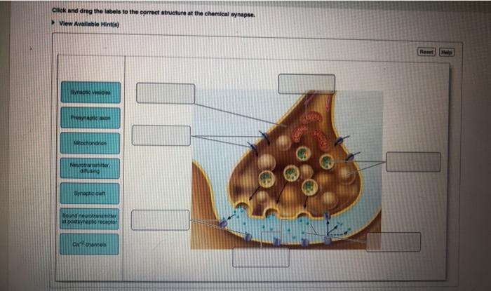 Click and drag the labels to the correct structure at the chemical synapse.. A&P Chapter 11 Nervous System 2 Homework - GraduateWay Determine whether the following descriptions apply to sensory nerves, motor nerves, or mixed nerves (both sensory and motor). Place each cranial nerve label in the appropriate category, describing its function. Label the terminal branches of the brachial plexus. Label the structures of the central nervous system and their protective structures. Week 6: Muscle Physiology Flashcards & Practice Test - Quizlet Drag the identifying term to the correct structure on the diagram. Some labels may be used more than once. Which of the following best describes how ACh changes the ion permeability of the sarcolemma? A molecule that carries information across a synaptic - Course Hero 51 Drag and drop the descriptive labels of events into the correct sequence at the chemical synapse. 1. Action potential sweeps down presynaptic axon 2. Calcium channels open in axon terminal. 3. Synaptic vesicles fuse and exocytize neurotransmitter 4. Diffusion of neurotransmitter into extracellular fluid separating two neuron'smembranes 5. ReaderUi ReaderUi