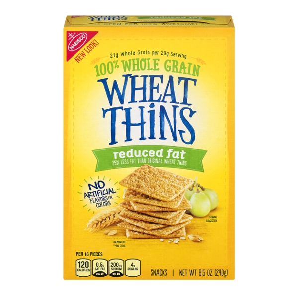 Wheat Thins Reduced Fat Whole Grain Wheat Crackers, Family Size, 14.5 ... Wheat Thins Reduced Fat Whole Grain Wheat Crackers, Family Size, 12.5 oz. 36. 4.6 out of 5 Stars. 36 reviews. Pickup 3+ day shipping. Wheat Thins Reduced Fat Whole Grain Wheat Crackers, 8 Oz. $2.56. current price $2.56. Wheat Thins Reduced Fat Whole Grain Wheat Crackers, 8 Oz. 3.