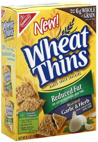 Amazon.com: wheat thins reduced fat 1-48 of 59 results for "wheat thins reduced fat" Wheat Thins Whole Grain Crackers Family Size, Reduced Fat, 12.5 Oz Boxes 6, 6 Count 6 Count (Pack of 1) 9 $22 02 ($3.67/Count) Get it as soon as Fri, Jul 23 FREE Shipping on orders over $25 shipped by Amazon Wheat Thins Reduced Fat Whole Grain Wheat Crackers, Family Size, 12.5 Oz, 1Count