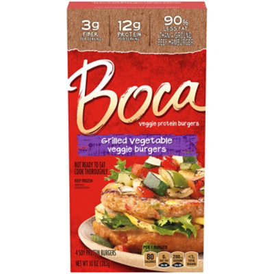 Boca The Original All American Veggie Burgers - 4 ct Frozen Soy protein burgers. Scan for more information. Call (877) 966-8769 for more food information. Microwave: Microwave (1100 watt): (1) Place 1 unwrapped frozen burger on microwavable plate. (2) Microwave on high for 1 min. (3) Flip burger. Microwave on high for an additional 35 seconds. Cook thoroughly. Cooking Instructions: Skillet (recommended ... Label: BOCA Burger on Wheat Bun (CSP) - Loma Linda University nutrition facts serving size (258g) servings per container amount per serving calories 510 calories from fat 220 total fat 24g saturated fat 3.5g trans fat og cholesterol 10mg sodium 1000mg total carbohydrate 55g % daily value* 180/0 3% 32% dietary fiber 8g sugars 10g protein 24g vitamin a 30% calcium vitamin c 15% iron 30% *percent daily values … Boca Veggie Burgers Original V - Online Groceries | Safeway These veggie burgers contain 90% less fat than a ground beef hamburger. Veggie Burgers, Original Vegan. 4 soy protein burgers. Per 1 Burger: 70 calories; 0 g sat fat (0% DV); 280 mg sodium (12% DV); 0 g sugars. Fat has been reduced from 11 g to 0.5 g per serving. 13 g protein per serving. 70 calories per serving.