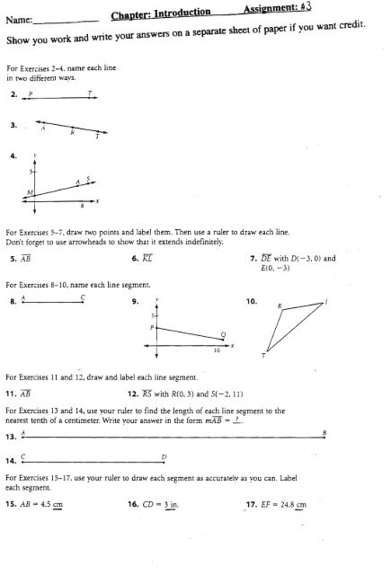 PDF Lines, Rays and Line segments - Tutoringhour.com 7) Draw a segment with endpoints Y and Z. 3) DE BC 6) Draw a line with the 9) points J and K. 2) QR 5) FG 8) Draw a pair of opposite rays with a common endpoint S. Lines, Rays and Line segments Connect the points and draw lines, rays and line segments as indicated. Teaching Resources @ Third Grade Math | How to Name Line Segments Using a ruler, draw a line that's two inches long. Now make one small dot at each end, and one in the middle. Label each dot with a letter. For example, on the left end of the line segment, write 'A.'. In the middle, write 'B' and at the right end make a letter 'C.'. Now you have created line segments AB, BC, and AC.