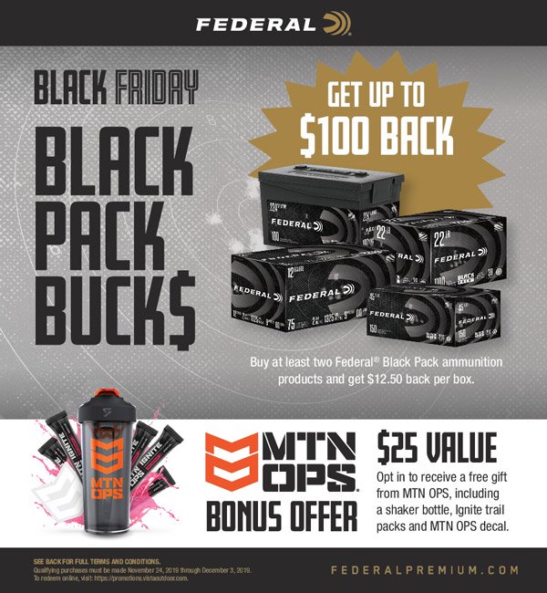 Federal Black Pack Rimfire Ammo | Cabela's Product Details Whatever rimfire pursuit drives you, you'll get accurate, affordable performance with Federal® Black Pack Rimfire Ammo. The reliable bullet, priming and brass are suited to a wide variety of rimfire range applications, including plinking, target shooting, competition, and firearms training.