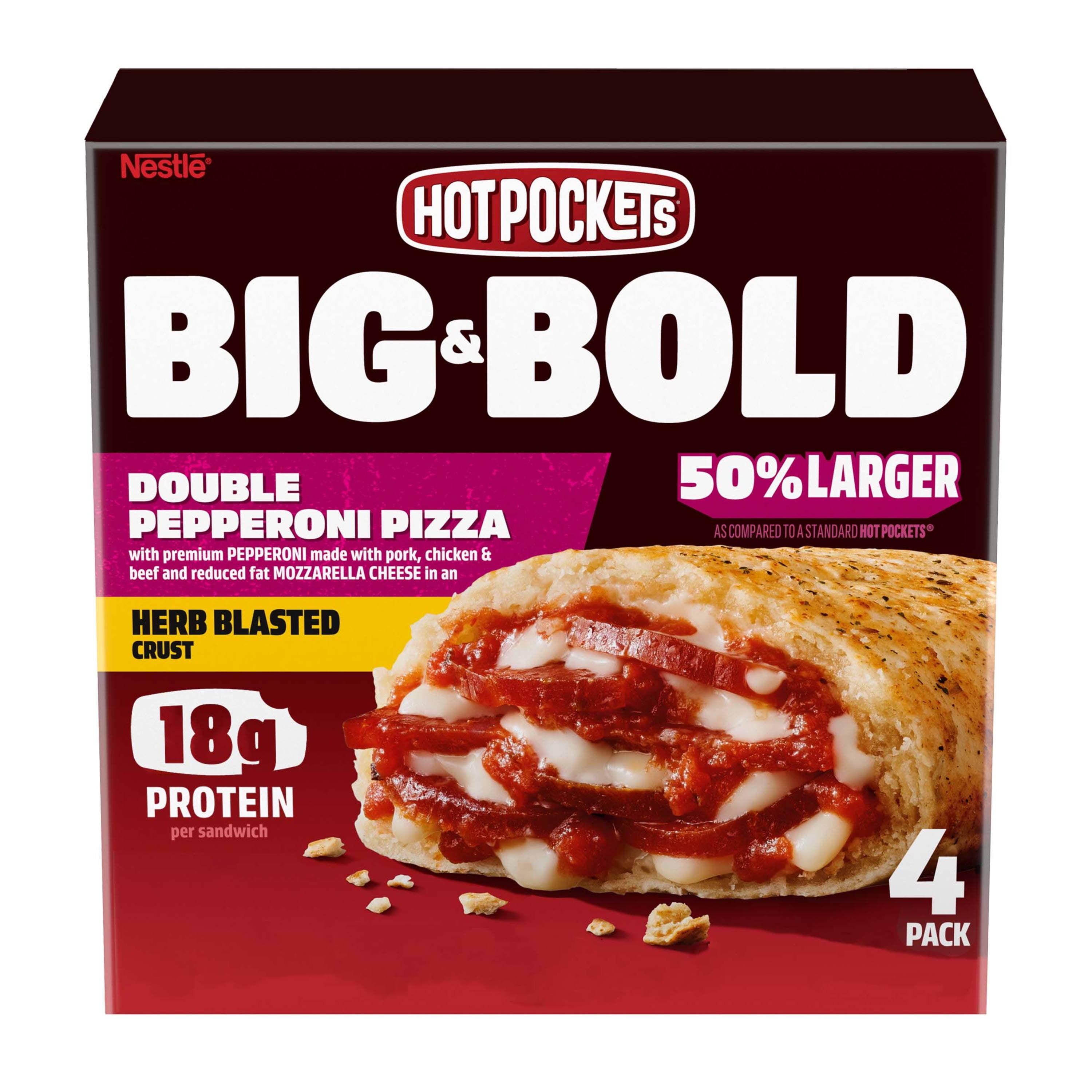 Hot Pockets Pepperoni Pizza 30 x 4 ounces - Nestlé Professional Hot Pockets. Pepperoni Pizza 30 x 4 ounces. Signature pepperoni, cheese and rich marinara packed into a crispy crust topped with Italian-style herbs and breadcrumbs. Portable snackability is perfect for on the go! Good Source of Protein. Made with Real Cheese. No Artificial Flavors.