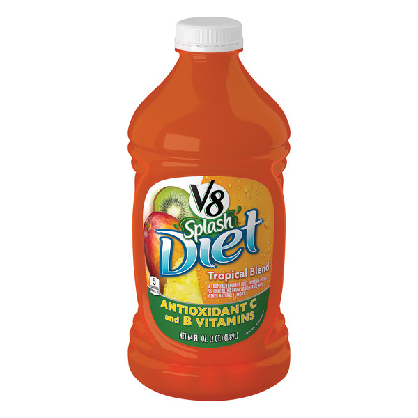 V8 Splash Tropical Blend Juice - 64 Fl Oz Bottle : Target One (1) 64 fl oz bottle of V8 Splash Tropical Blend Flavored Juice Beverage. Pineapple juice drink made with 5% carrot juices from concentrate along with other natural flavors. Tropical fruit flavored beverage makes a delicious kids juice and smoothie add-in. Gluten free V8 Splash has 25% less sugar than leading brands of juice drinks (1)