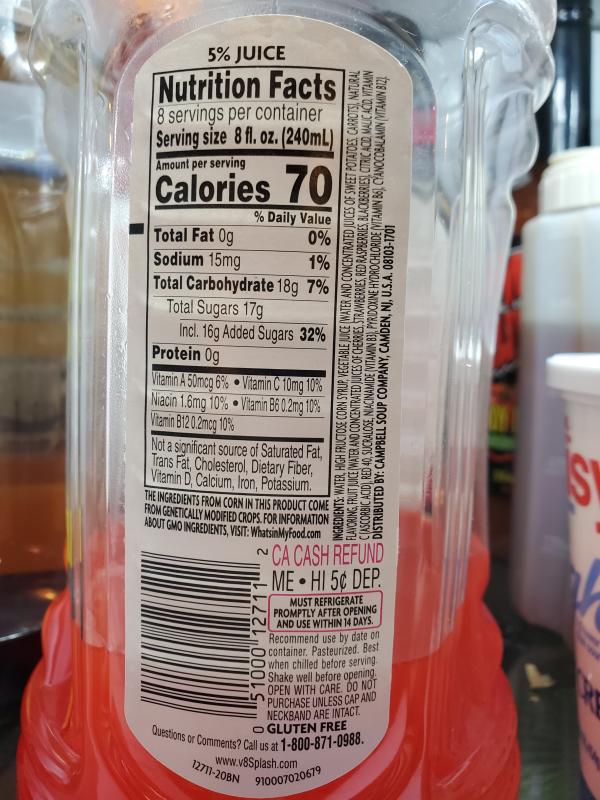 Post a Comment for "44 v8 splash nutrition label"
