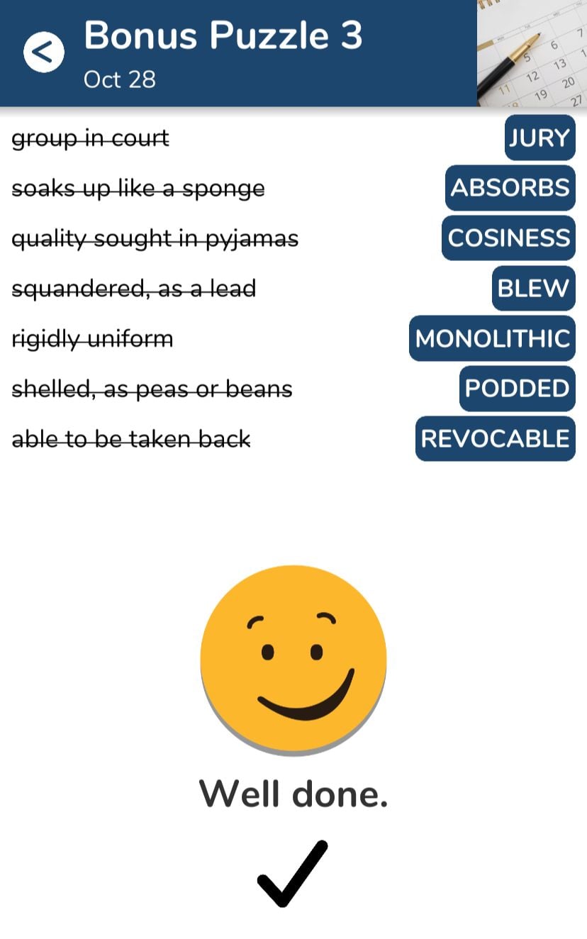 Backed out 7 little words. Backed out 7 little words - DailyAnswers.net Here is the answer for: Backed out crossword clue answers, solutions for the popular game 7 Little Words Bonus 3 Daily. This is a very popular word game developed by Blue Ox Technologies who have also developed the other popular games such as Red Herring & Monkey Wrench! Stuck and can't find a specific solution for any of the daily crossword clues? 7 Little Words:Amazon.com:Appstore for Android Each bite-size puzzle consists of 7 clues, 7 mystery words, and 20 letter groups. Find the mystery words by deciphering the clues and combining the letter groups. 7 Little Words is FUN, CHALLENGING, and EASY TO LEARN. We guarantee you've never played anything like it before. Give 7 Little Words a try today! From the creators of Monkey Wrench ... BACKED OUT Synonyms: 21 Synonyms & Antonyms for BACKED OUT - Thesaurus.com See definition of backed out on Dictionary.com verb withdraw synonyms for backed out Compare Synonyms back down cancel give up renege surrender avoid back pedal beg off blow it off chicken out cop out get cold feet go back on recant resign scratch shy from throw in the towel weasel out wiggle out worm out 7 Little Words June 7 2022 Answers (6/7/22) - msn.com The answers for the 7 Little Words Daily Bonus 3 puzzles are below. Click/tap on a clue below to reveal the answer. Broke With A Sharp Sound. Outshining. Alternative To Equal. Loosely-Woven Gauze ...