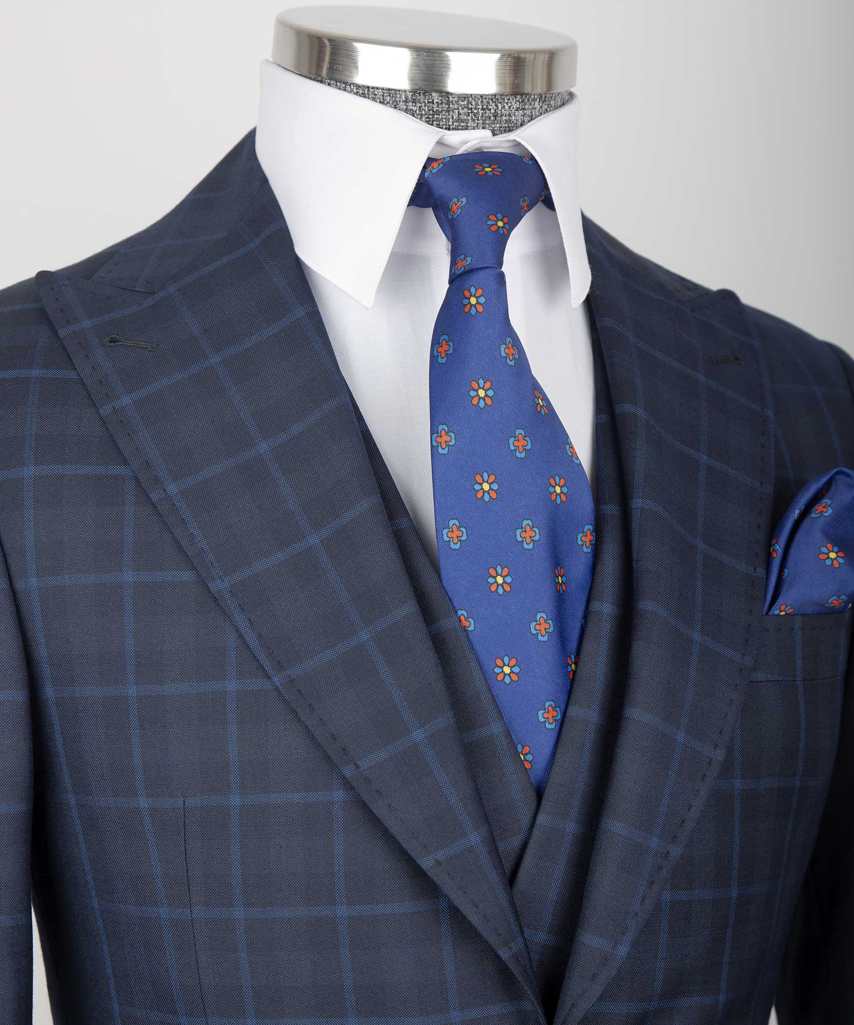 7 Effortlessly Cool Suits Worn by George Clooney 7 of our Favourite George Clooney Suits 1. The king of relaxed tailoring, George Clooney has layered a navy nailhead blazer with a tonal shirt and a classic white t-shirt here. The polka dot pocket square adds a little fun to the look whilst being in keeping with the colour palette. 2. This has to be our favourite suit of the bunch.