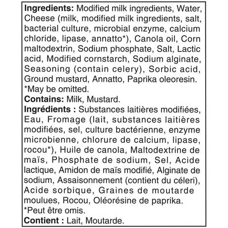 10 Cheese Brands That Use the Lowest Quality Ingredients The packaging of this cheese-adjacent product states it's "cheddar flavor," not cheddar cheese, so that's your first warning. The ingredients listed on the back include potato starch, cellulose powder to prevent the cheese from gumming into a mass, gelatin, milk protein concentrate, modified food starch, and many, many more. 3 Easy Cheese