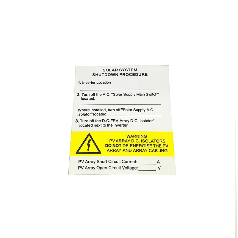 Spectrum | A Solar Company of Meralco Information we collect when you enter our premises such as your name, address, vehicle type and plate number or conduction sticker number, and identification card details; Information captured by our close circuit television (CCTV) installed in our premises including entrance and exit points. PV Solar Labels at Wholesale Prices | Get Solar Labels 20-45 Caution Solar Circuit Label $0.75 - $1.25 Quick view View Options Compare 20-43 Battery Disconnect Do Not Relocate This Overcurrent Device $0.75 - $1.50 Quick view View Options Compare 20-42 PV Solar Breaker Do Not Relocate This Overcurrent Device $0.75 - $1.50 Quick view View Options Compare Solar Warning Labels | Shop | USA | Solar Panel $ 3.00 26-S Caution Solar Circuit - Conduit Wrap $ 4.00 27-S Warning Turn Off Photovoltaic AC Disconnect $ 1.25 28-S Main PV System AC Disconnect $ 1.25 29-S Main PV System DC Disconnect $ 1.25 30-S Caution Solar Electric System Is Connected $ 0.75 Out of stock 50-S Complete Inspection Kit - Full 63 Piece Set to Pass Your Final Inspection $ 40.00 09-2329 BULK PACK (500 Piece - Reflective) - PV Labels Reflective Solar Label Value Pacl - CAUTION SOLAR CIRCUIT BULK PACK.