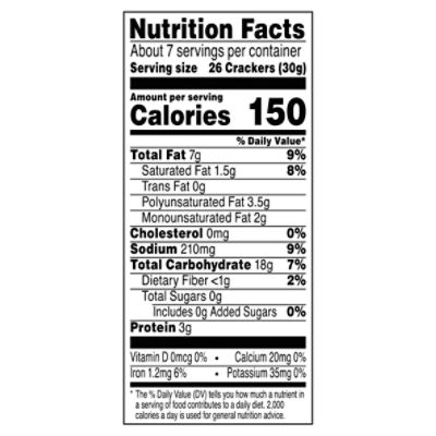 Cheez-It White Cheddar Cheese Crackers, 12.4 oz - Kroger Nutrition Facts servings per container Serving size 26crackers (30 g) Amount per serving Calories 150 % Daily value* Total Fat 7g 8.97% Saturated Fat 1.5g 7.5% Trans Fat 0g Polyunsaturated Fat 3.5g Monounsaturated Fat 2g Cholesterol 0mg 0% Sodium 210mg 9.13% Total Carbohydrate 18g 6.55% Dietary Fiber 1g 3.57% Sugar 0g Protein 3g Calcium 20mg 2% Amazon.com: cheezit white cheddar Cheez-It Cheese Crackers, Baked Snack Crackers, Office and Kids Snacks, White Cheddar, 12.4oz Box (1 Box) 12.4 Ounce (Pack of 1) 1,594 Cheez-It Grooves Crispy Cheese Cracker Chips, Sharp White Cheddar, Family Size, 1.06 Pound (Pack of 12) 1.06 Pound (Pack of 12) 21 Cheez-It Cheese Crackers, White Cheddar, 7 Oz, Box - Walmart.com Refer to the product label for full dietary information, which may be available as an alternative product image. 7.0 Servings Per Container Serving Size 30 g Amount per serving Calories 150 * The % Daily Value (DV) tells you how much a nutrient in a serving of food contributes to a daily diet. Calories per gram: Fat 9 • Carbohydrate 4 • Protein 4 Homemade Cheez-Its With Real Cheddar - Bigger Bolder Baking I used 8 oz. of extra-sharp cheddar cheese to make our Cheez-Its, but feel free to experiment with other semi-hard cheeses. If you'd like a more mild-tasting Cheez-It, try cheddar cheese instead of extra-sharp. ... You can also try making these crackers with 8 oz. of Monterey Jack cheese, or with 6 oz. of white cheddar cheese and 2 oz. of ...