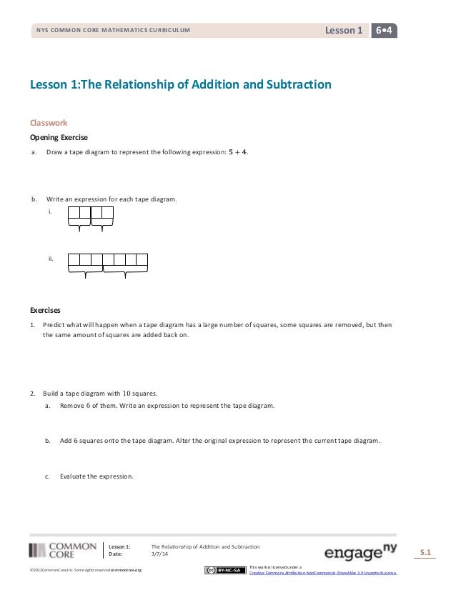 EP Math 3 – Easy Peasy All-in-One Homeschool What’s left? Draw a box around the 10 left in 10 0. Now you have ten minus two left. You know the answer to that. What’s ten minus two? (answer: 8) Write 8 in the tens spot in the answer. What’s the answer to 100 – 20? (answer: 80) (You can also think about adding on.) *Complete the worksheet. Each time draw a box around the ten in the ... The Relationship of Addition and Subtraction - Online Math Learning 1. Predict what will happen when a tape diagram has a large number of squares, some squares are removed, but then the same amount of squares are added back on. 2. Build a tape diagram with 10 squares. a. Remove 6 of them. Write an expression to represent the tape diagram. b. Add 6 squares onto the tape diagram. Subtraction With Tape Diagrams Worksheets - K12 Workbook Subtraction With Tape Diagrams. Displaying all worksheets related to - Subtraction With Tape Diagrams. Worksheets are Tape diagram session revised new orleans ppt notes, Introduction to tape diagrams, Adding fractions, Tape diagram and model drawing problem solving addition, Lesson 1 the relationship of addition and subtraction, Lesson 1 the ... Tape Diagrams: Modeling 2-Digit Addition and Subtraction We know both parts, so we find the whole by adding. Seventeen plus six equals twenty-three. Keep practicing and your child will recognize: When we know both parts, we add. When we are missing a part, we subtract. Your child will continue using tape diagrams to figure out how to solve problems third grade but with larger numbers!