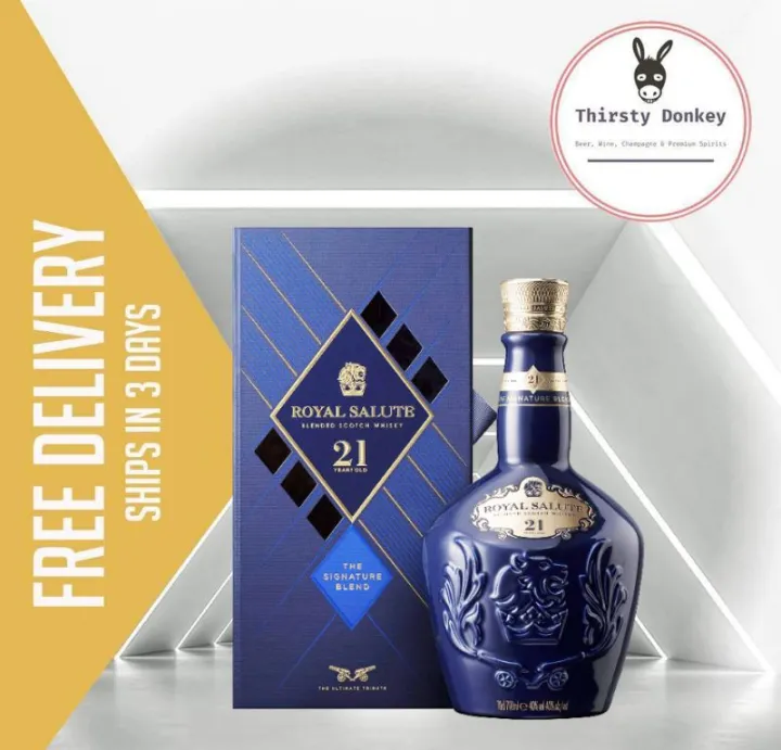 21 royal salute - Blue Decanter | WHISKEY SILOAM Blended Scotch Whisky 21 royal salute - Blue Decanter $ 115.00 $ 95.00 A whisky fit for a king, or queen This exquisite 21 year old expression from Royal Salute comes resplendent in a stunning blue decanter. Chivas release tastes every bit as good as it looks, A gentle and floral 40% malt with lilting honey and cherry notes Buy now — OR —