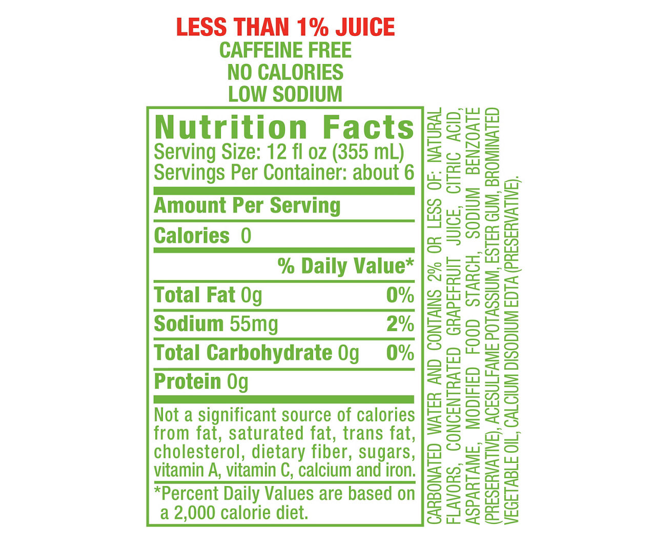 Squirt soda nutrition label