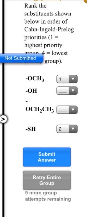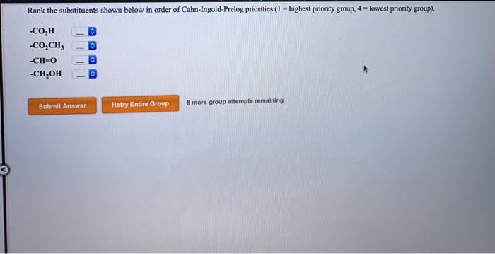 2423 EP05 001A - Ranking Substituents According to Cahn ... - YouTube Rank the following set of substituents in order of priority according to the Cahn-Ingold-Prelog sequence rules: a) -OH b) -OCH3 c) -COOH d) -CHO ...more ...more